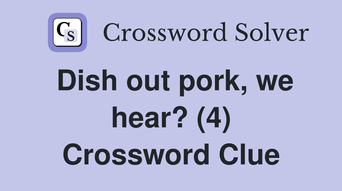 Dish out pork we hear? (4) Crossword Clue Answers Crossword Solver