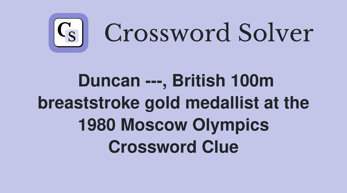 Duncan British 100m breaststroke gold medallist at the 1980 Moscow