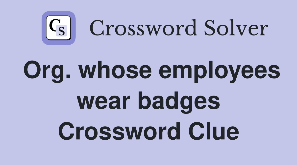 Org whose employees wear badges Crossword Clue Answers Crossword