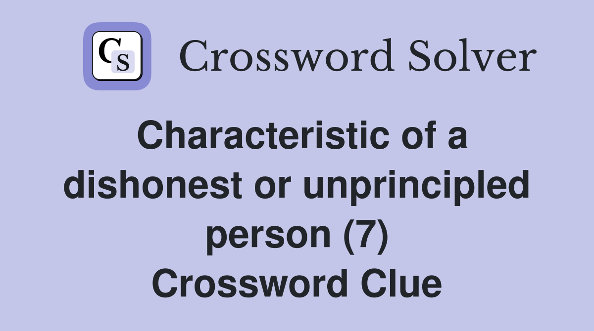 Characteristic of a dishonest or unprincipled person (7) Crossword
