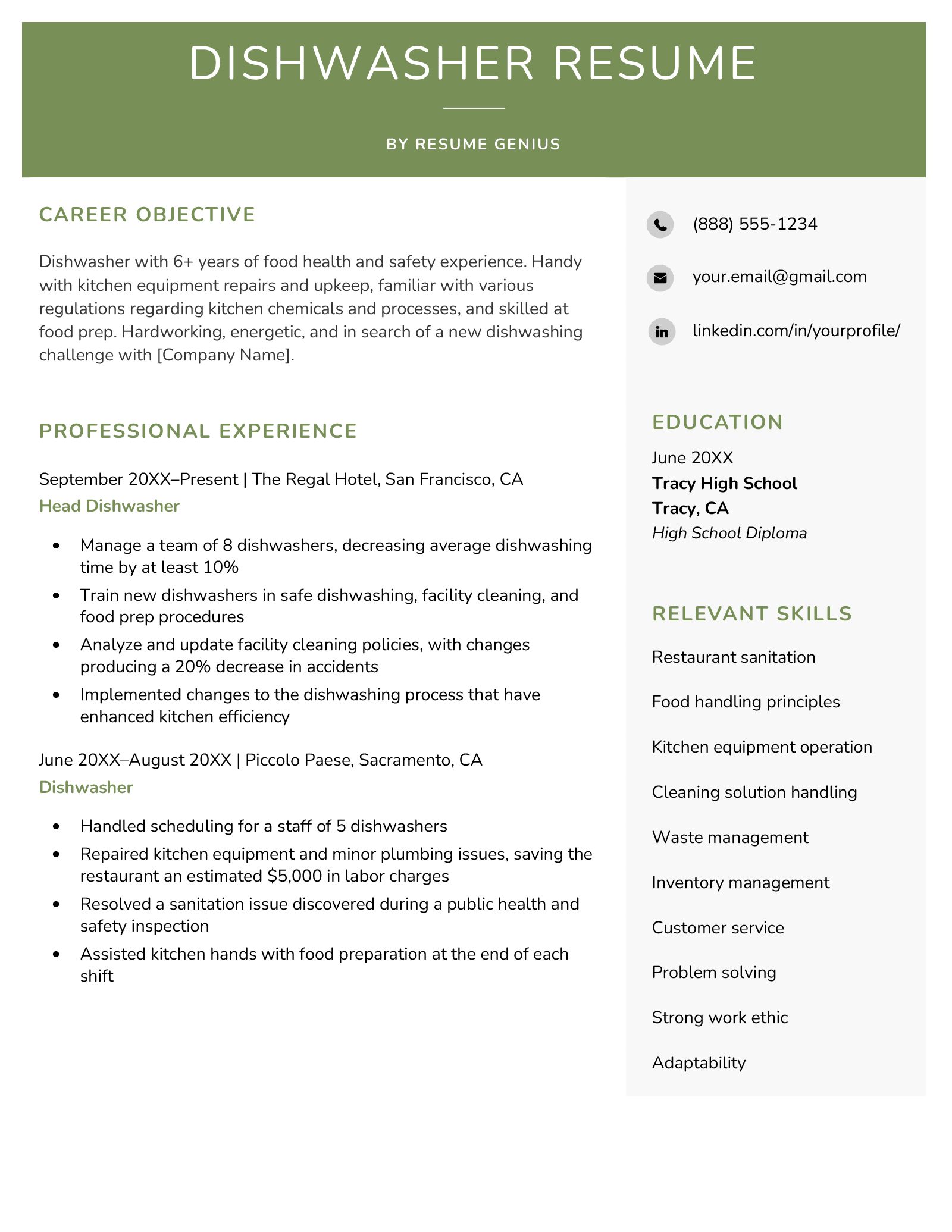 Dishwasher Resume Example (Free Guide)