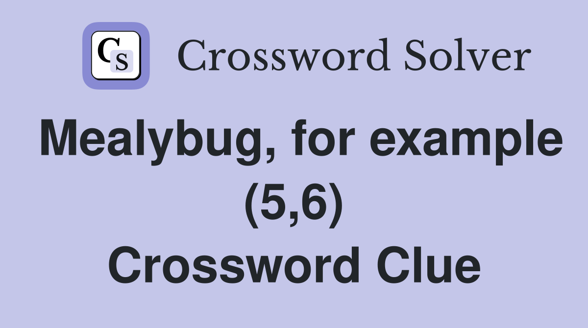 Mealybug for example (5 6) Crossword Clue Answers Crossword Solver