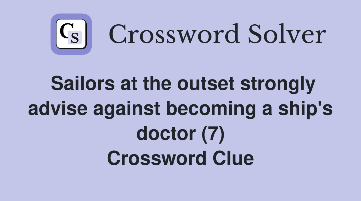Sailors at the outset strongly advise against becoming a ship #39 s doctor