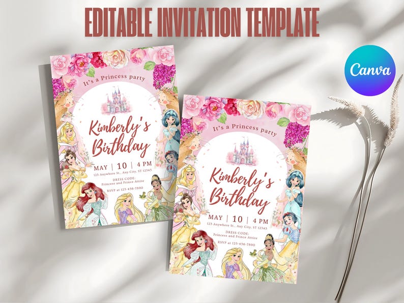Editable Princess Birthday Invitation Template Disney Princess Party