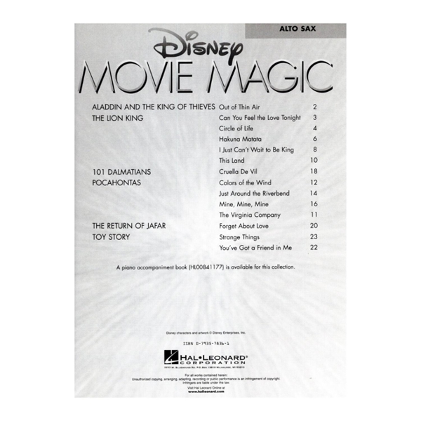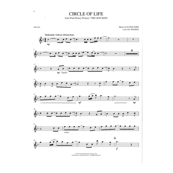 Canções de filmes da Disney para Saxofone Alto Hal Leonard Disney