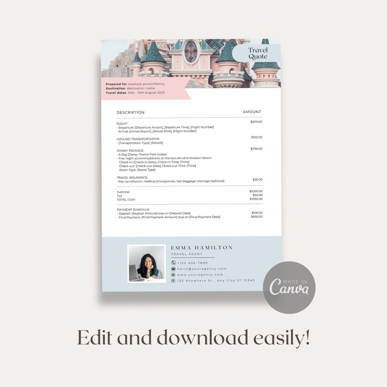 Travel Agent Quote Template: Customizable Canva Design (instant