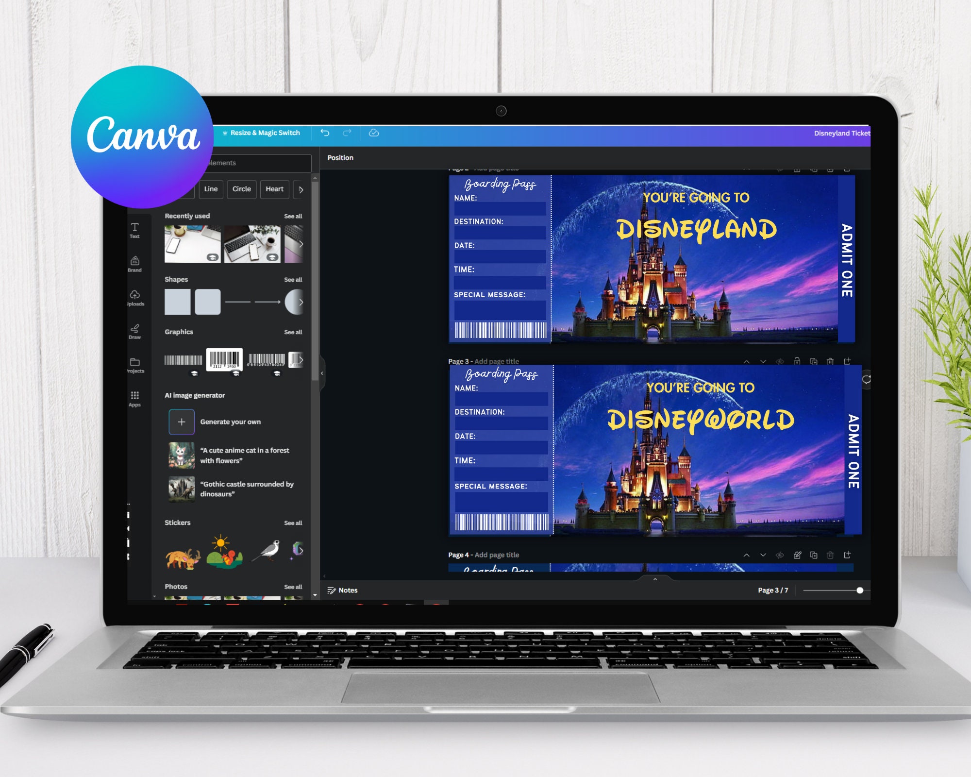 Disneyland Ticket Template CANVA Editable Disneyworld Ticket