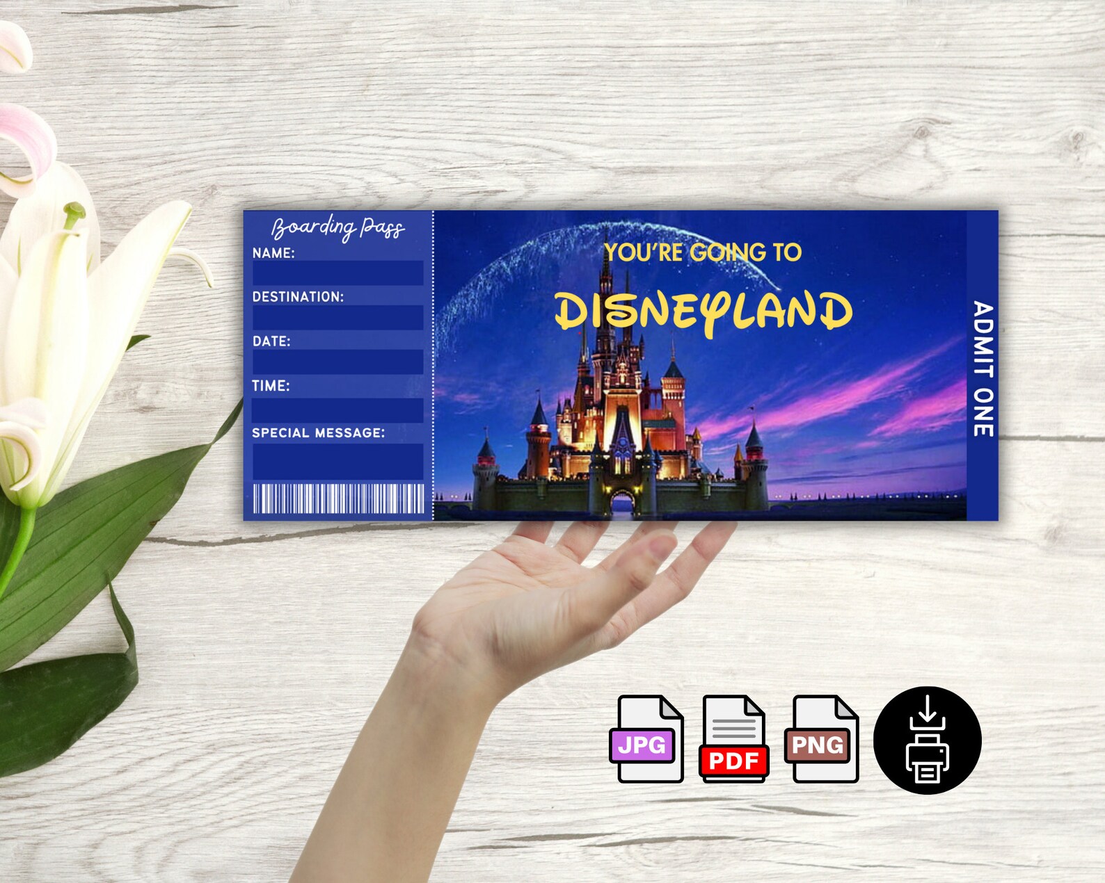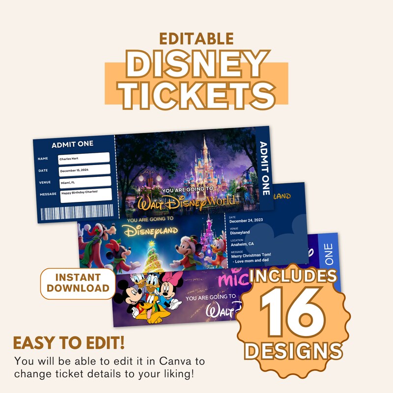 Editable Printable Ticket Disneyland Surprise Trip Birthday Gift