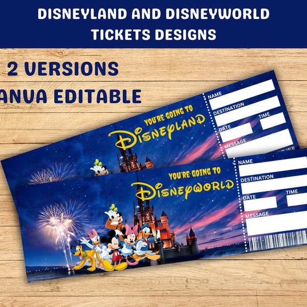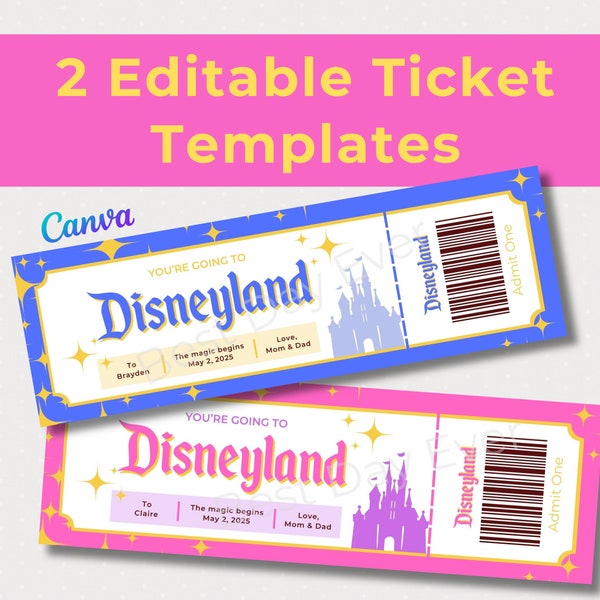 Disneyland Ticket Template Editable in Canva Surprise Trip Reveal