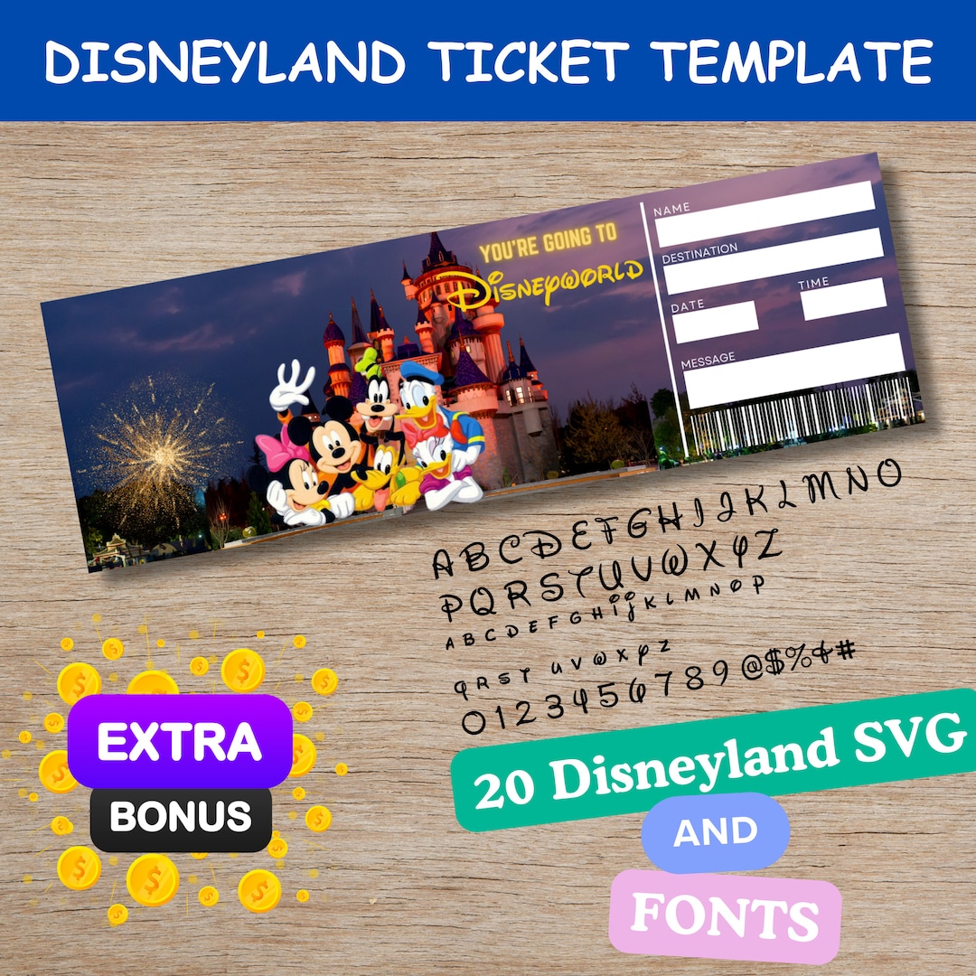 Disneyland Ticket Printable Disneyland Voucher Template Etsy