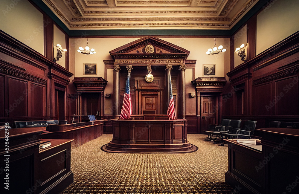 Court of the USA Courtroom of United States American flag in