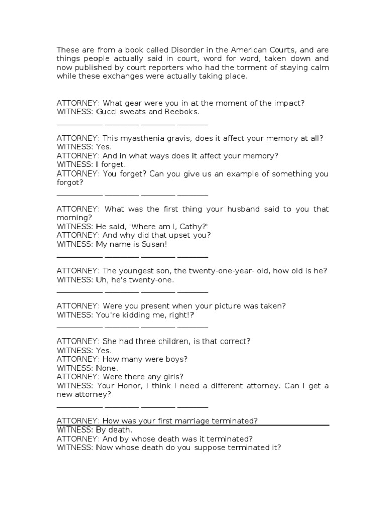 Genuine Hilarious American Court Case Quotes HubPages