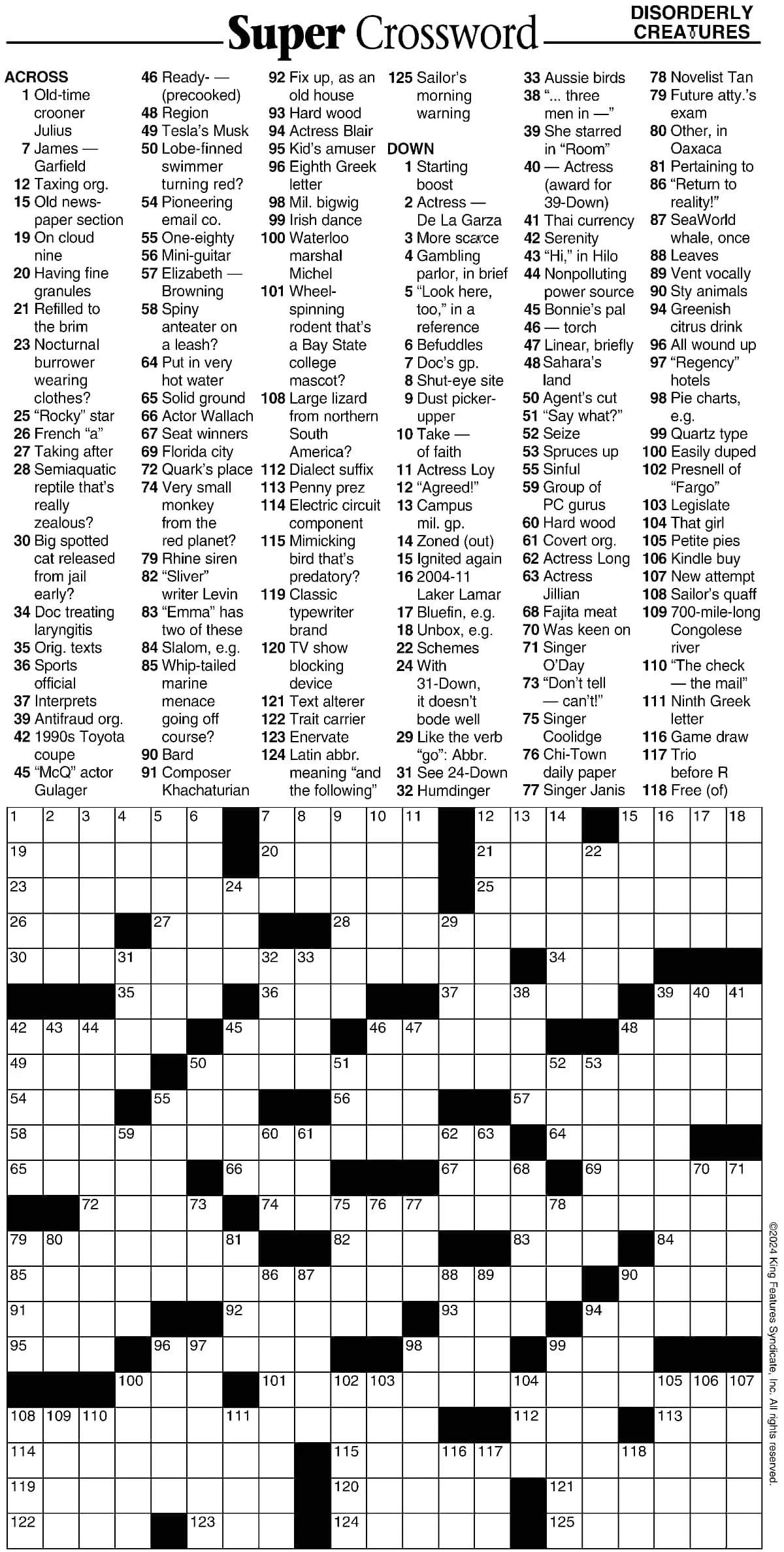 Super Crossword: Disorderly Creatures Your West Central Voice