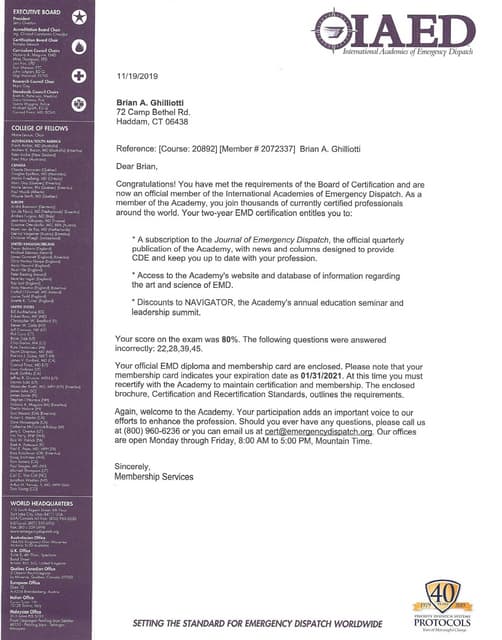 Brian Ghilliotti: Emergency Medical Dispatcher Certification PDF