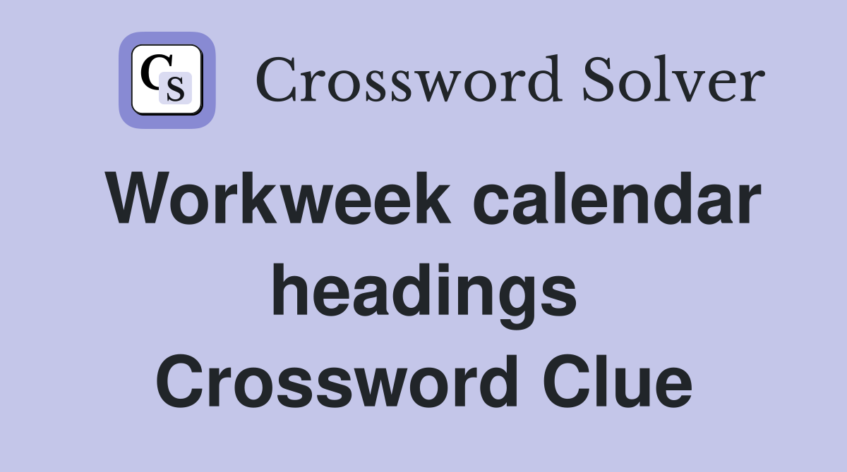 Workweek calendar headings Crossword Clue Answers Crossword Solver