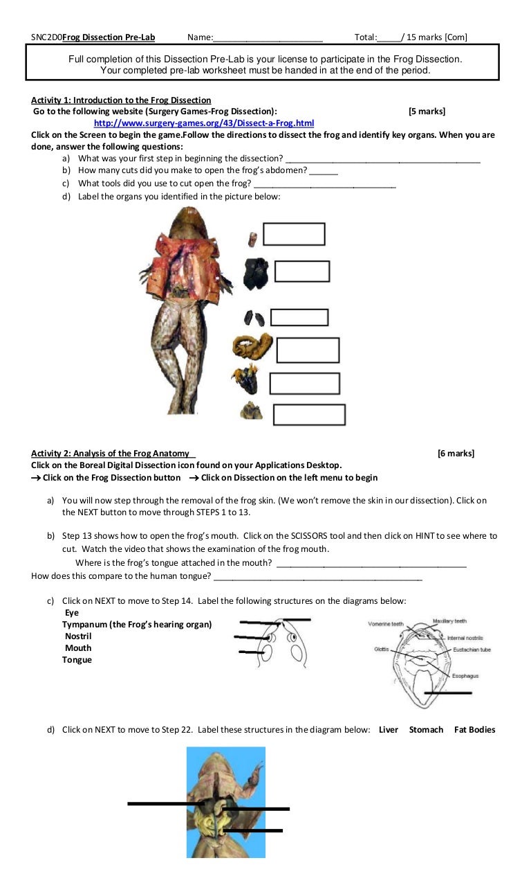 Frog Dissection Worksheet Answer Key Pro Worksheet