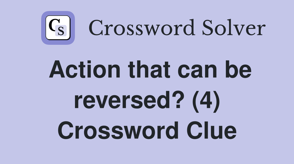 Action that can be reversed? (4) Crossword Clue Answers Crossword