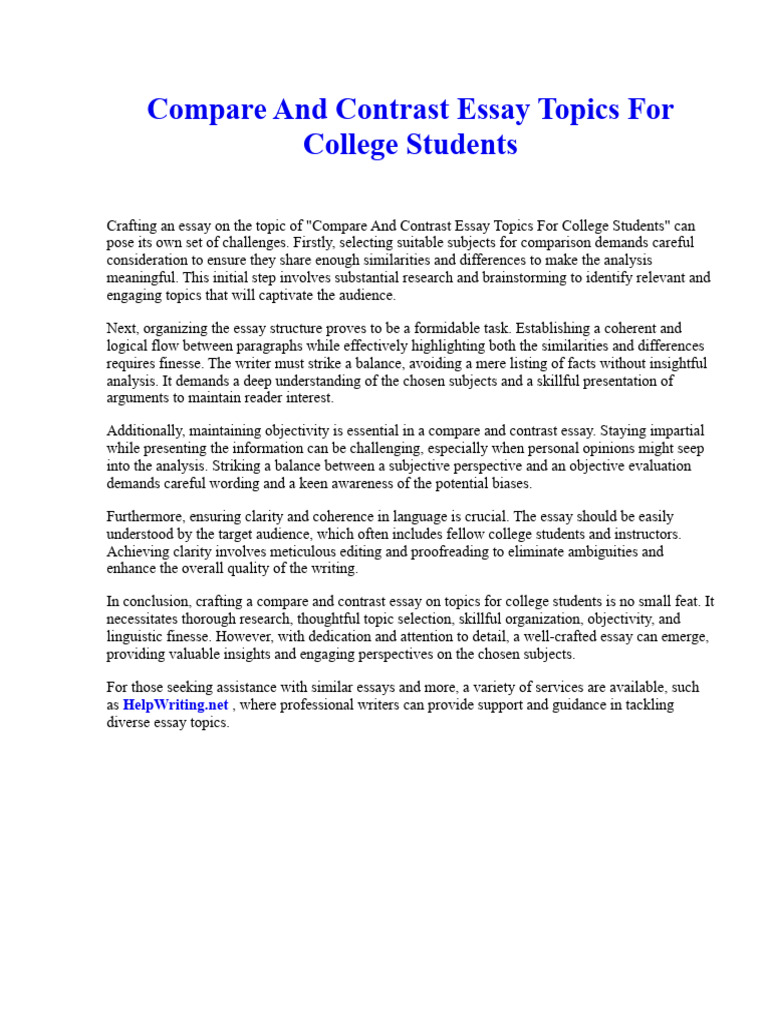 Compare and Contrast Essay Topics For College Students PDF Electric