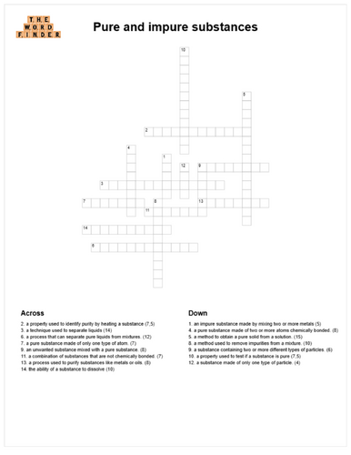 Pure Substances and Mixtures Crossword Puzzle Crossword Labs