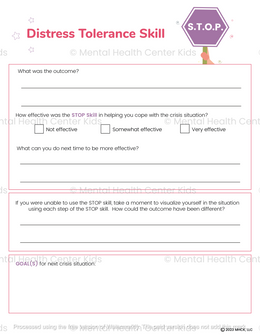DBT STOP Skill Worksheet Mental Health Center Kids