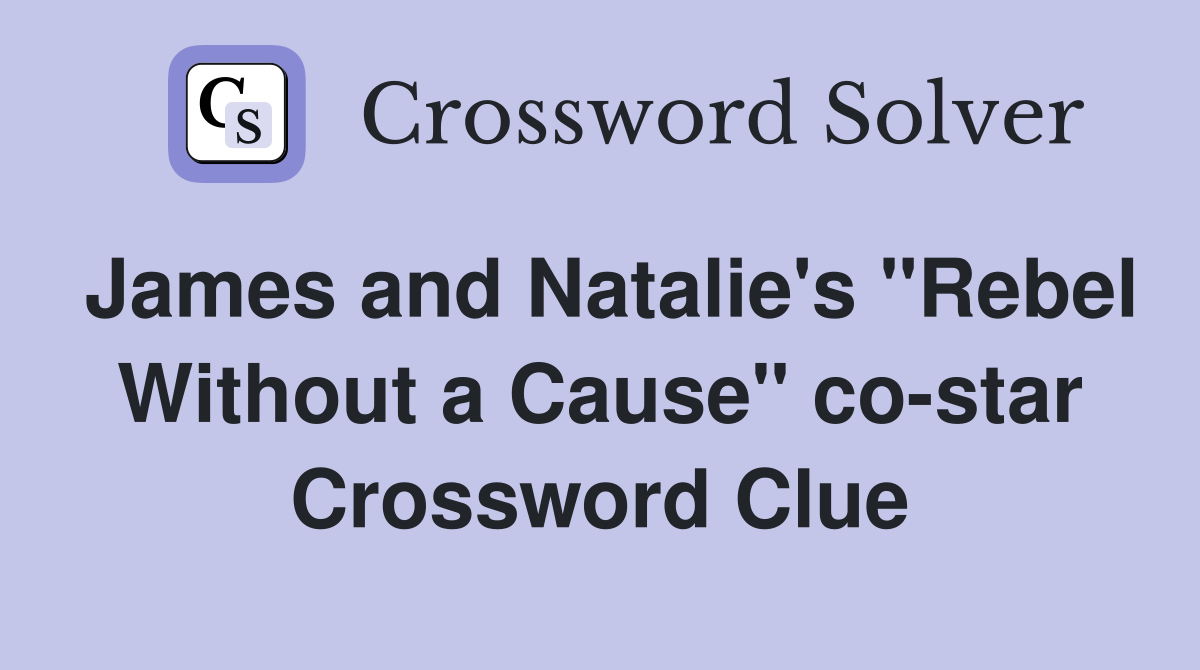 James and Natalie #39 s quot Rebel Without a Cause quot co star Crossword Clue