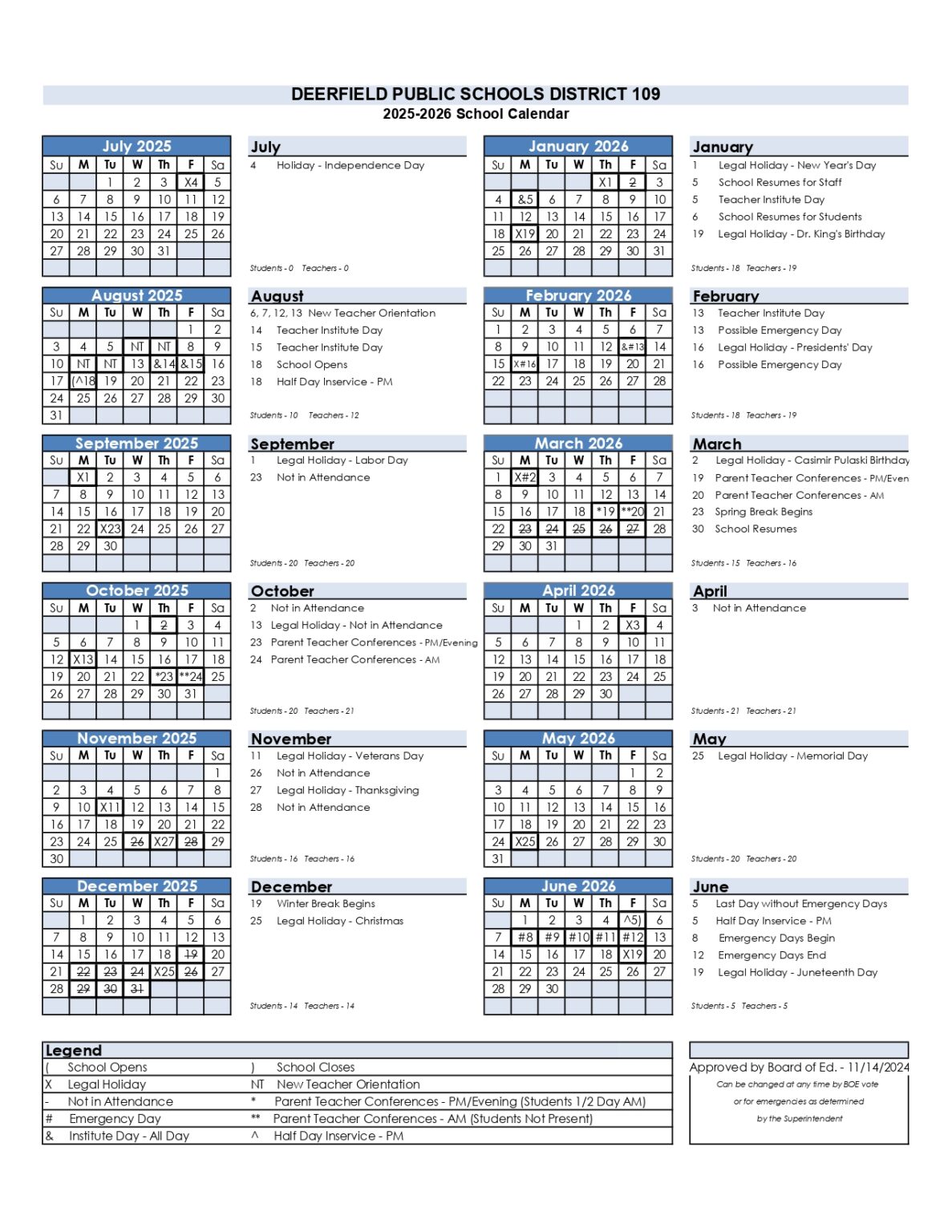 Deerfield DPS109 Calendar 25 26 pdf REVISED EduCounty