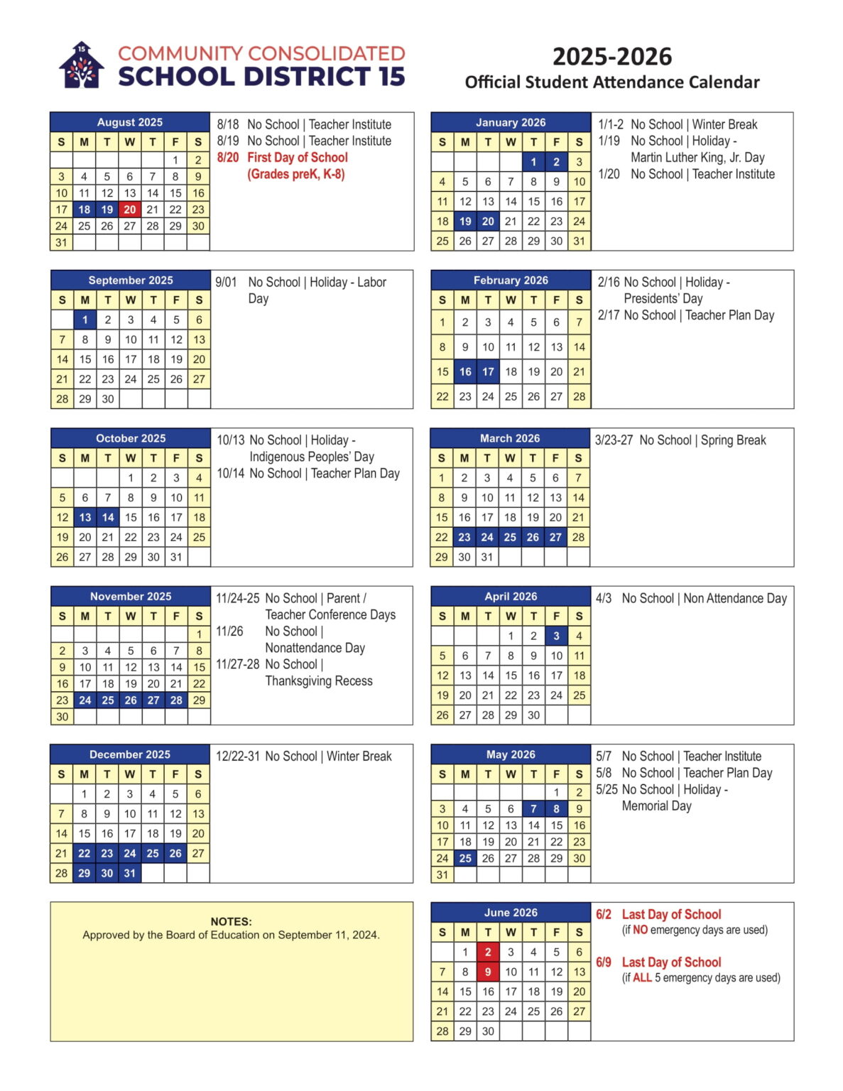 McHenry Elementary School District 15 Calendar 25 26 EduCounty