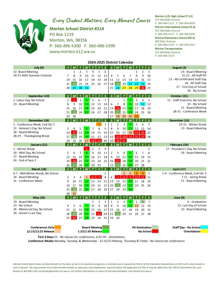 Morton School District Calendar wa 25 26 Revised PDF EduCounty