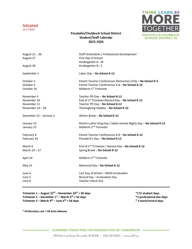 Pocatello Chubbuck School District 25 26 Calendar Revised pdf EduCounty