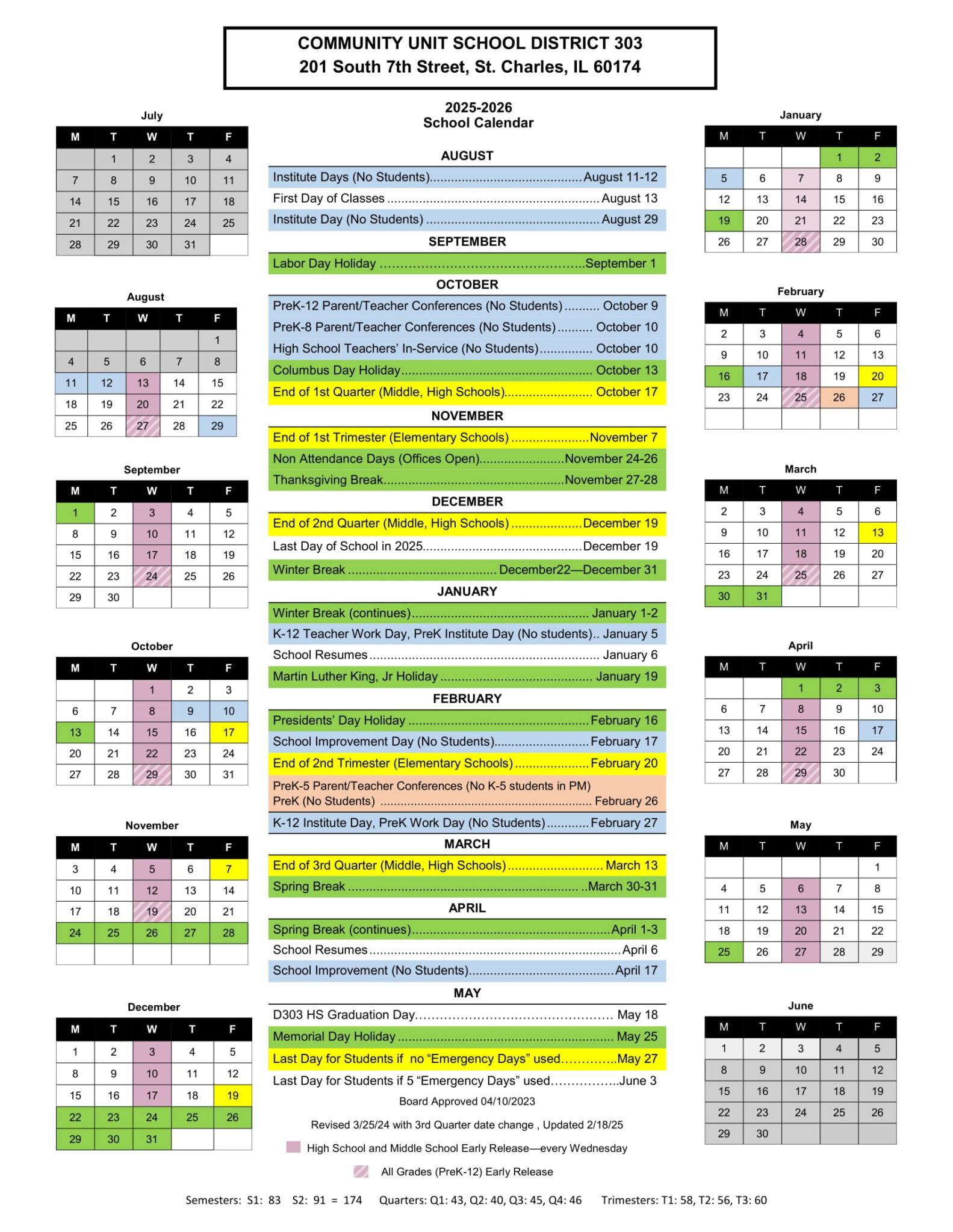 St Charles District 303 Calendar 25 26 PDF REVISED EduCounty