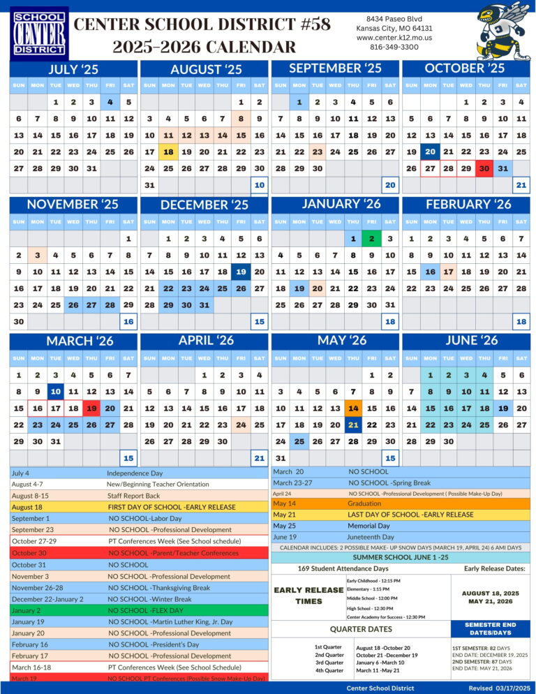 Center School District Calendar 25 26 Revised PDF EduCounty