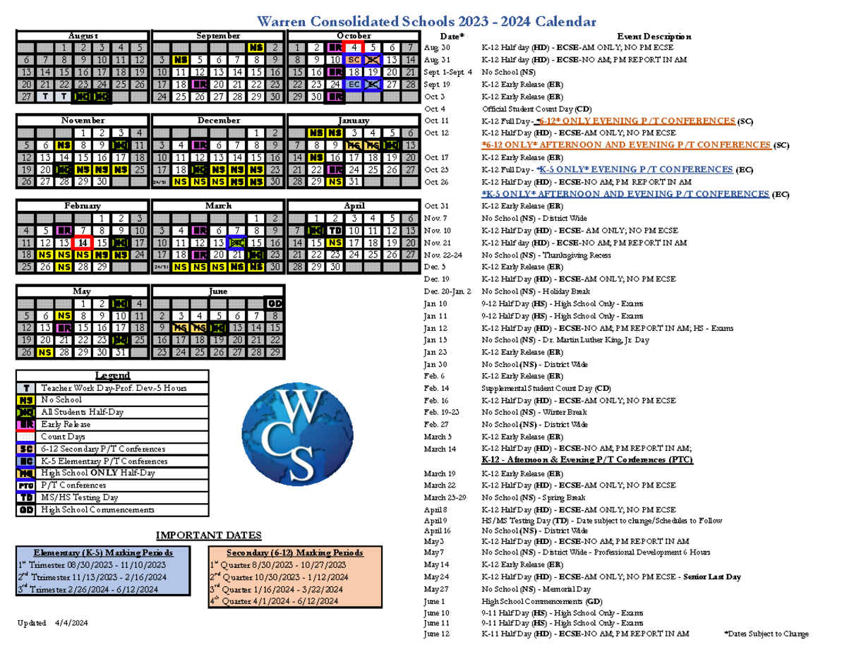 District Calendar for the 2024 25 School Year News Post