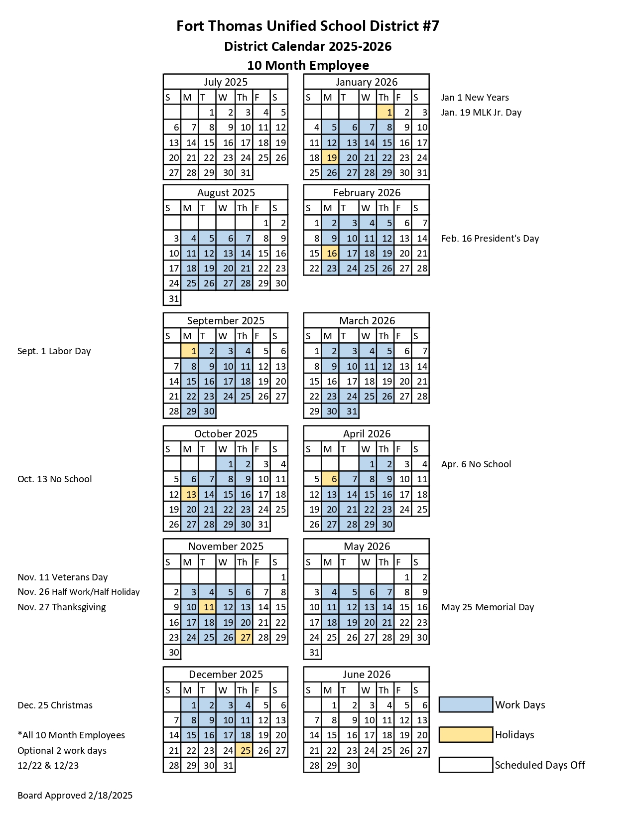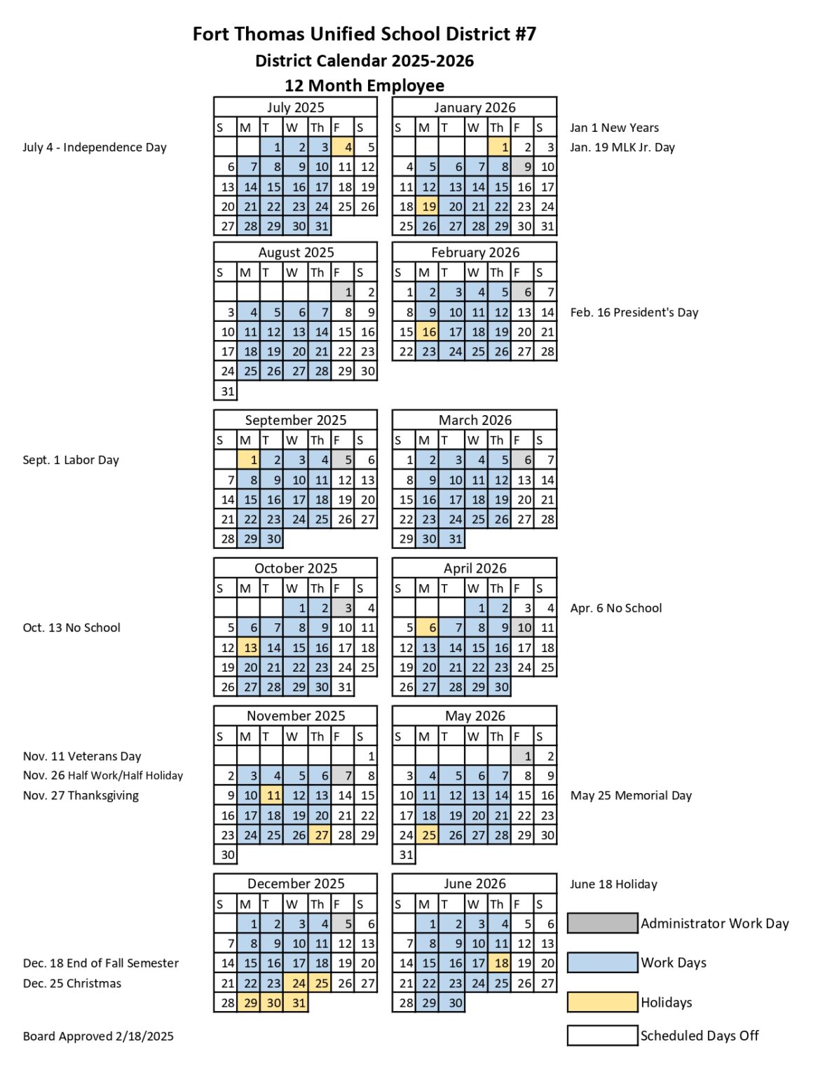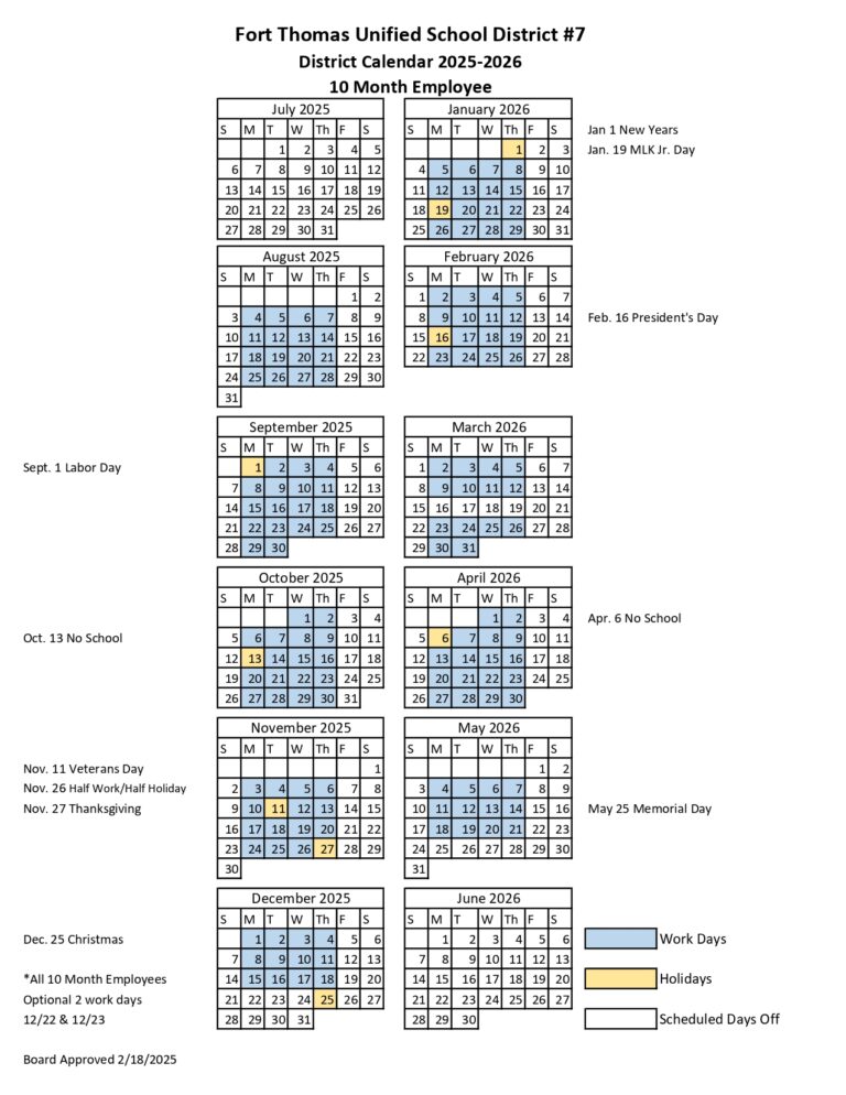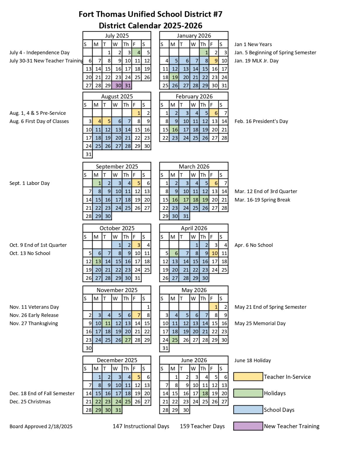 Fort Thomas Unified School District School Calendar 25 26 Revised PDF