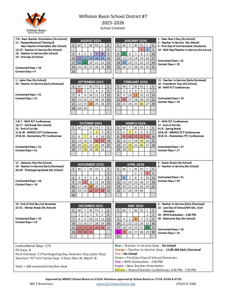 Williston Basin School District ND Calendar 25 26 Revised pdf EduCounty