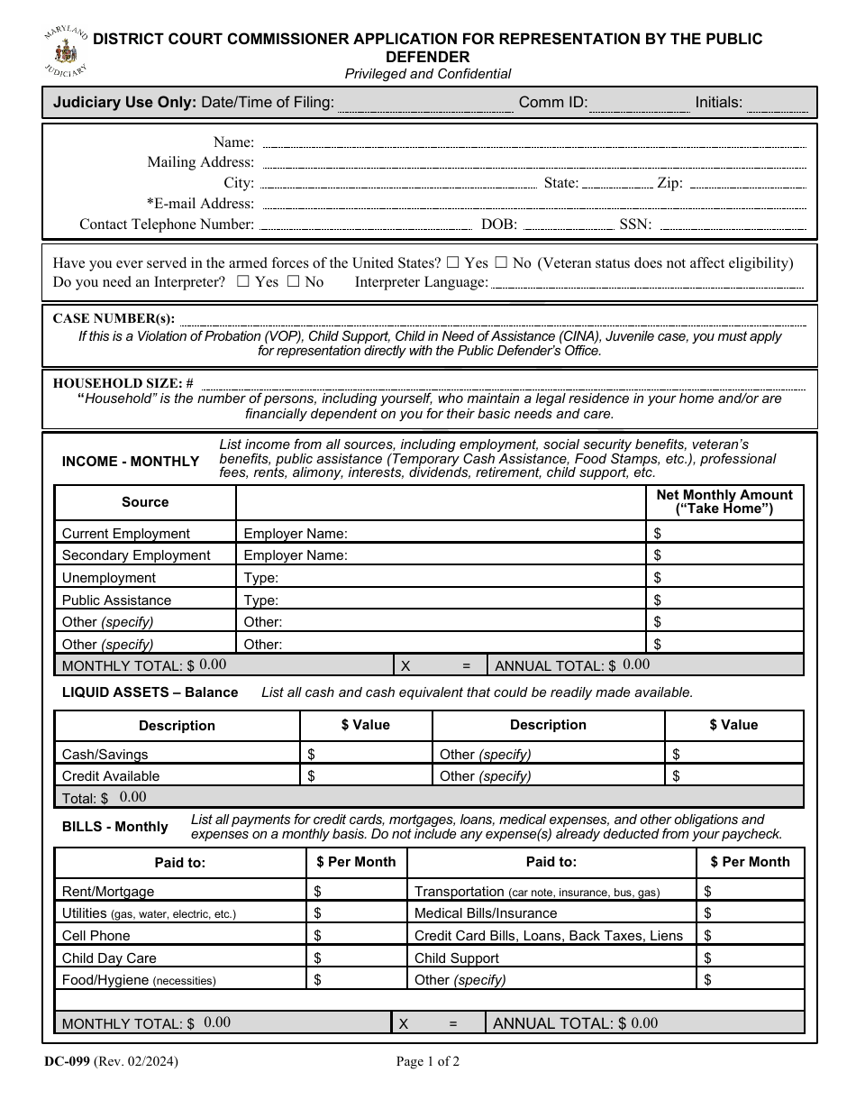 Form DC 099 Fill Out Sign Online and Download Fillable PDF Maryland