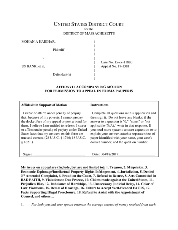 Fillable Online UNITED STATES DISTRICT COURT DISTRICT OF MASSACHUSETTS