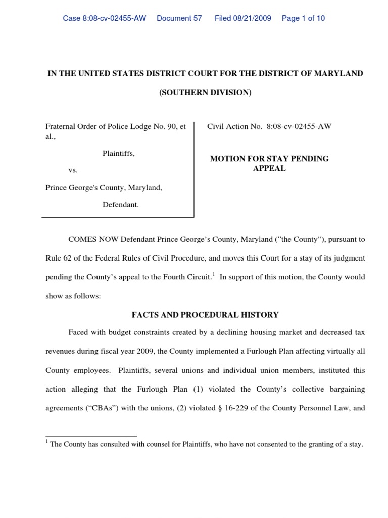 FOP v PG County Motion for Stay Pending Appeal (3)