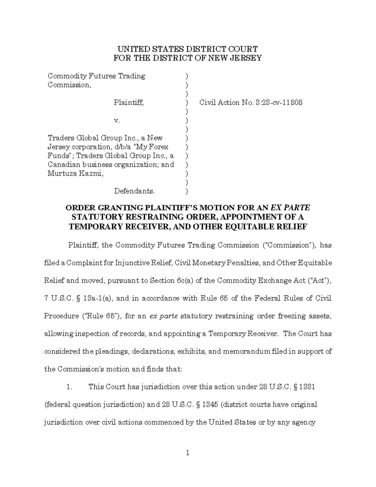 Enftradersglobalgrouporder 082923 FOR THE DISTRICT OF NEW JERSEY