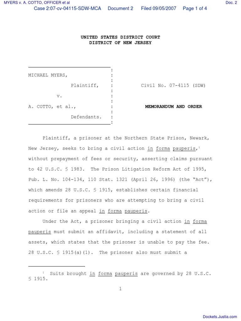 Fillable Online 1 UNITED STATES DISTRICT COURT DISTRICT OF NEW JERSEY