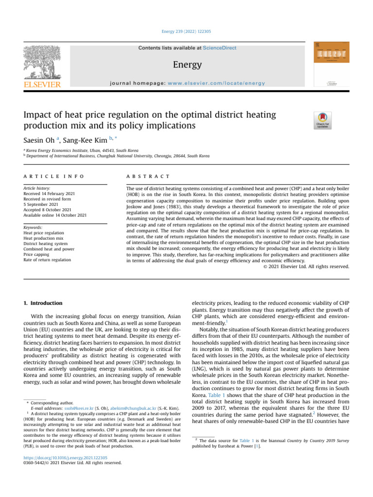 2022 Impact of Heat Price Regulation On The Optimal District Heating