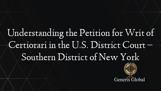 Understanding the Petition for Writ of Certiorari in the U S District