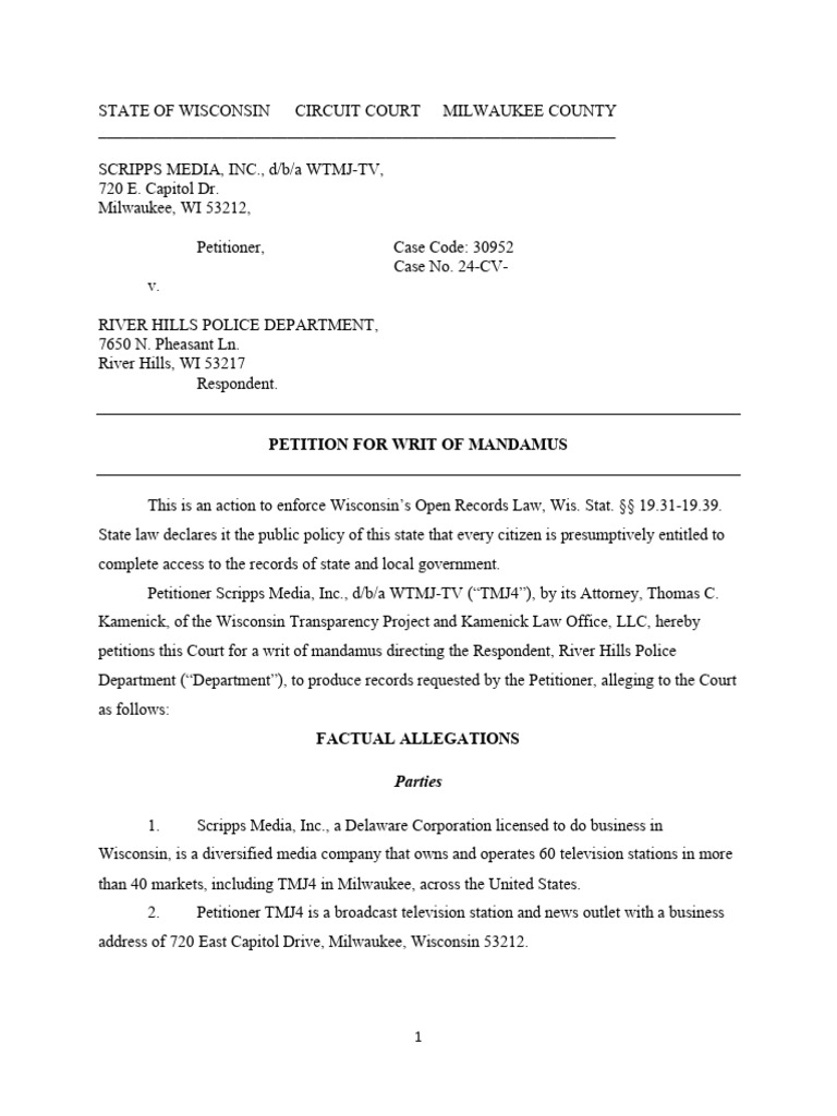 Petition For Writ of Mandamus PDF Mandamus Common Law