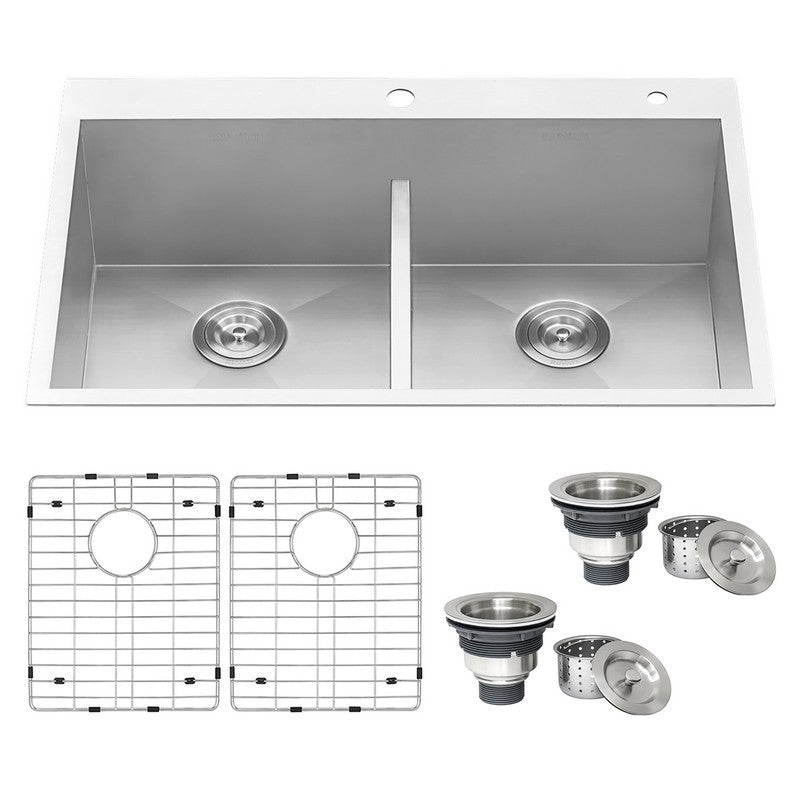 Ruvati Tirana 33 x 22 quot Drop In Topmount Stainless Steel Low Divide Ze