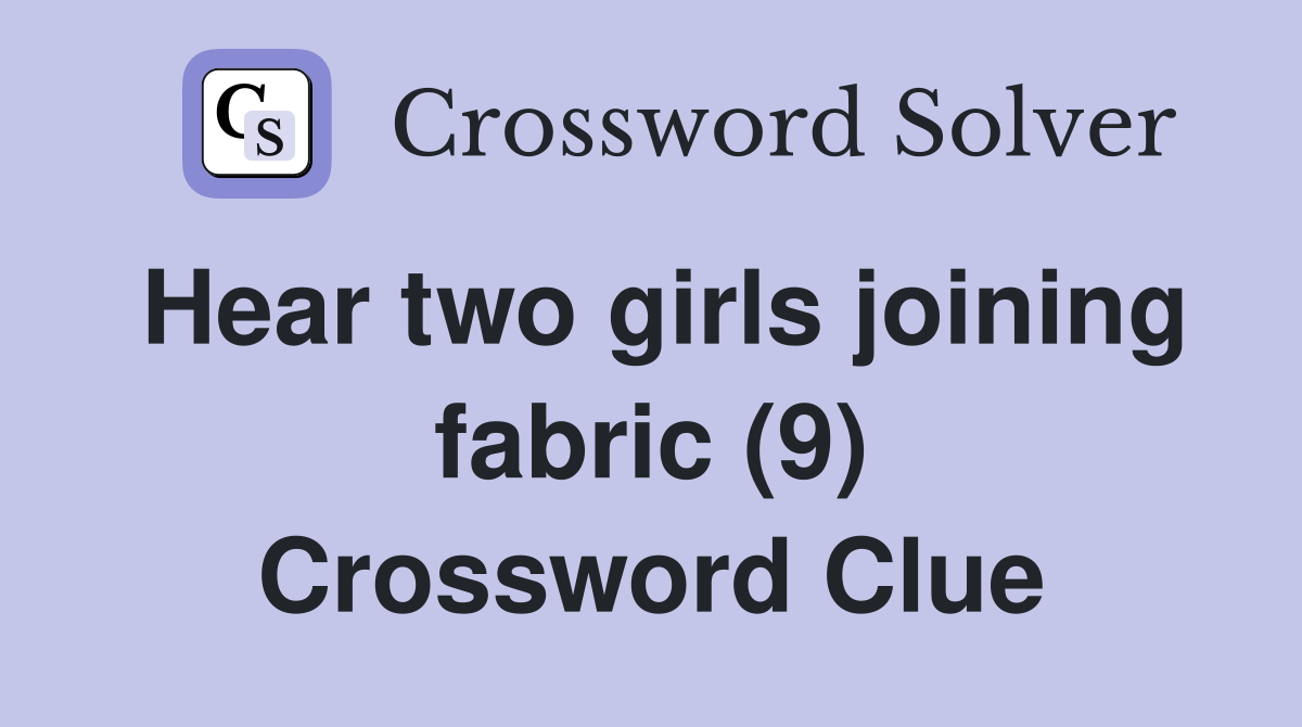 Hear two girls joining fabric (9) Crossword Clue Answers Crossword