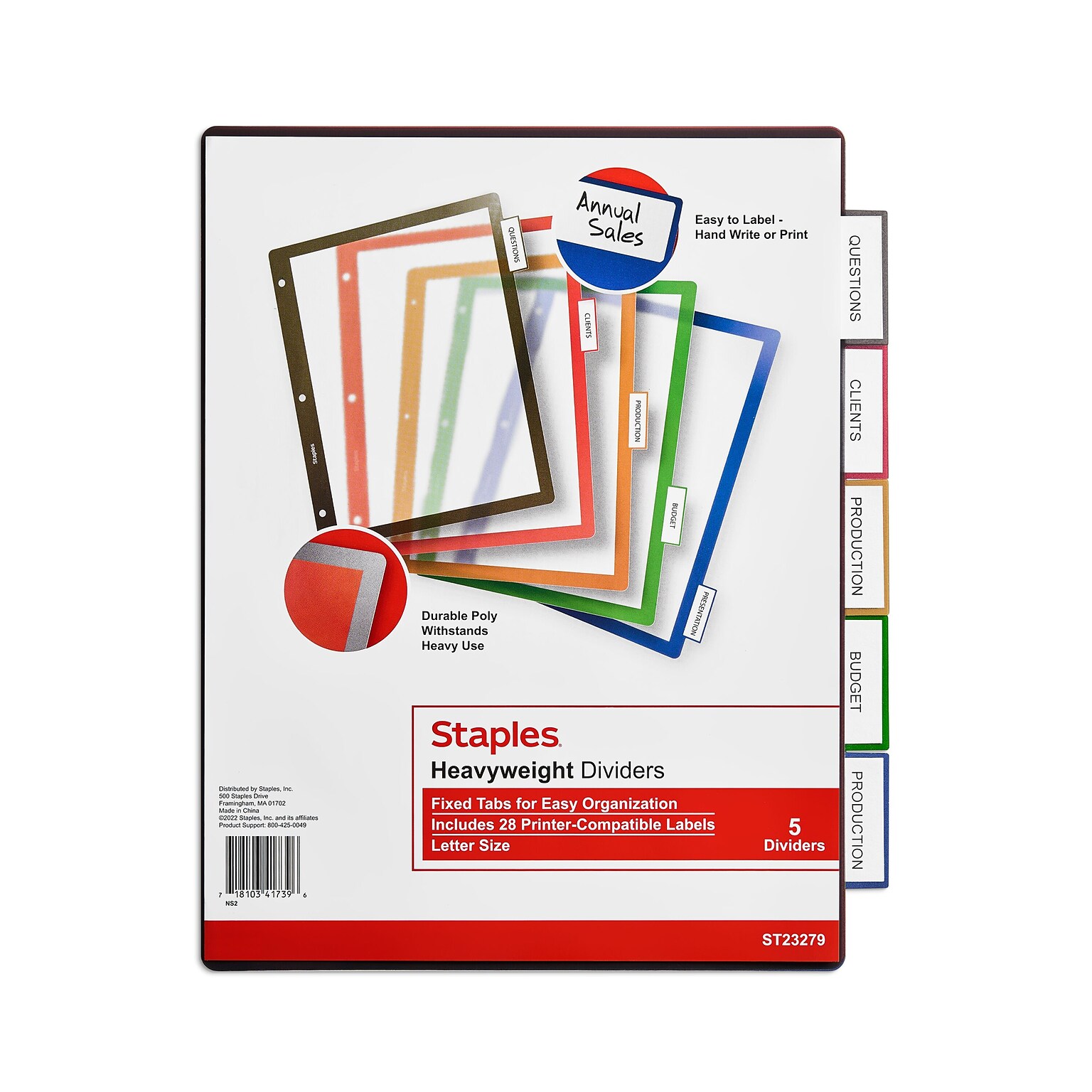 Staples Better Print Apply Label Plastic Divider 5 Tabs Assorted