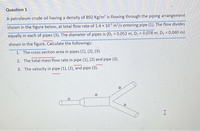 Q5 A petroleum crude oil having a density of 892 kg/m³ is flowing