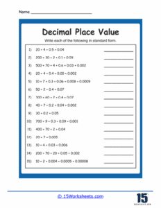 Place Value of Decimals Worksheets Build Number Sense 15 Worksheets com