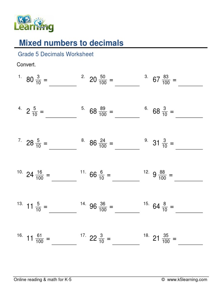 Grade 5 Mixed Numbers To Decimals D PDF Division (Mathematics