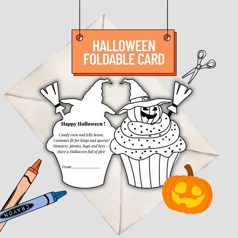 Halloween Coloring Card Printable: Pumpkin Witch DIY Craft (PDF