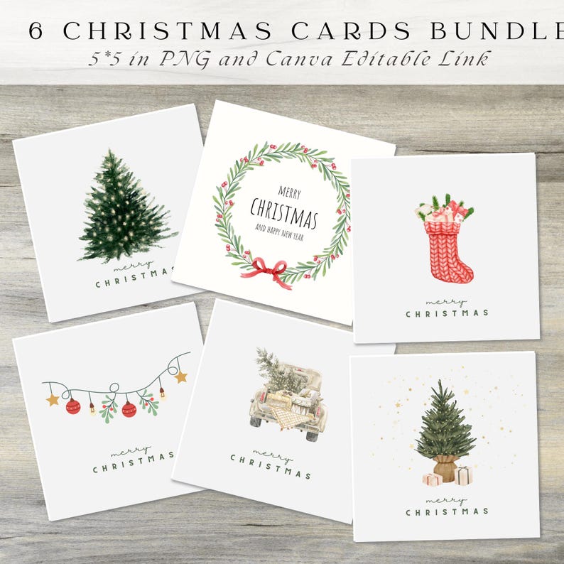 Printable Christmas Cards Bundle: DIY Digital Download (PDF PNG Files